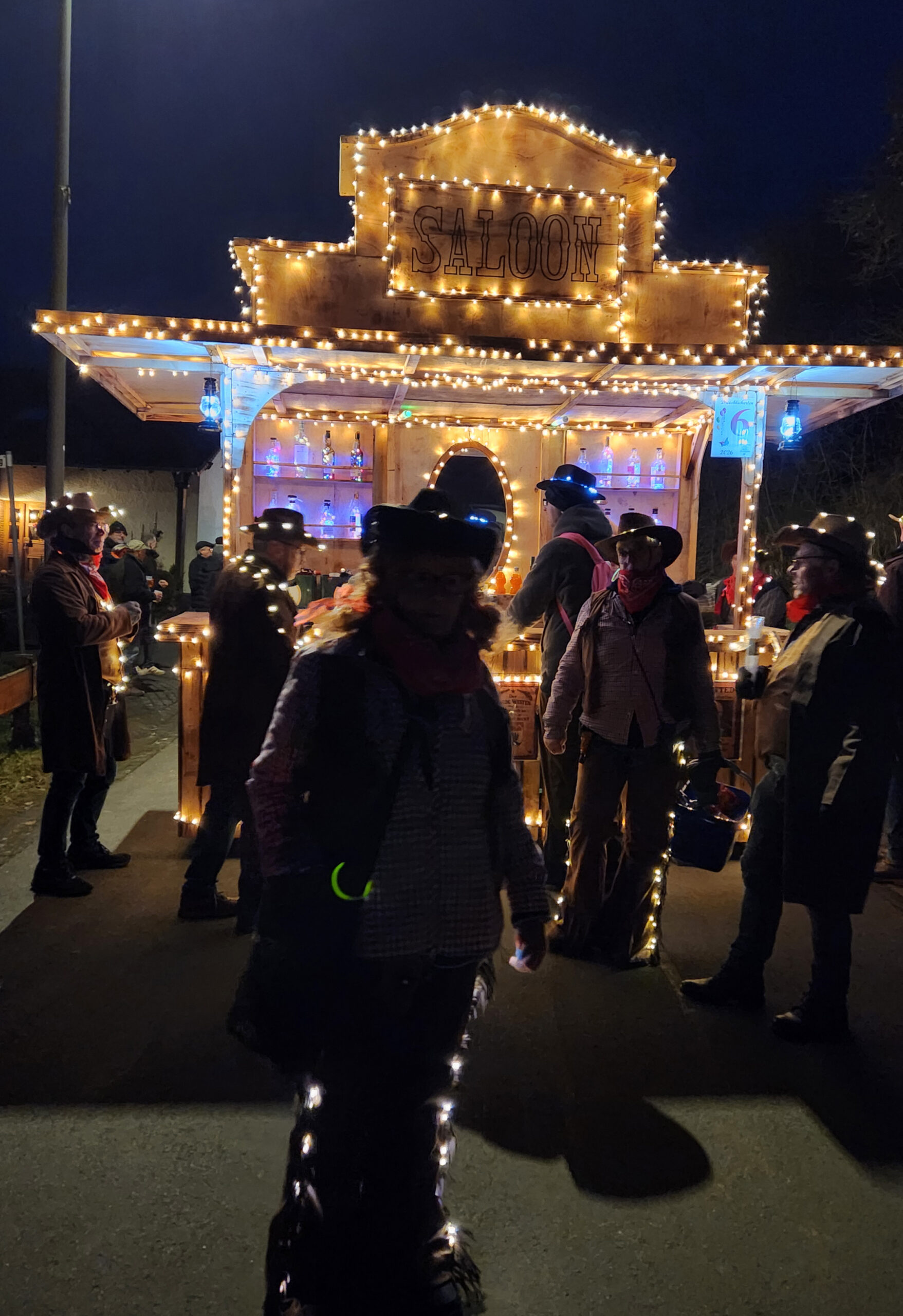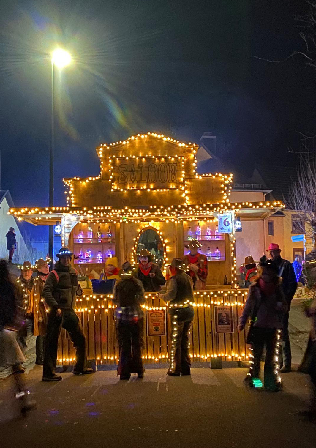 Auf zum Nachtumzug am Karnevalssamstag nach Niederstadtfeld. Einige Narren aus Weidenbach zogen (per Hand !) einen mit vielen hundert Lichtern ausgestatteten Western-Saloon durch die Straßen von Niederstadtfeld. Viel Bewunderung der Zuschauer und eine tolle Party nach dem Zug machten den Abend perfekt.